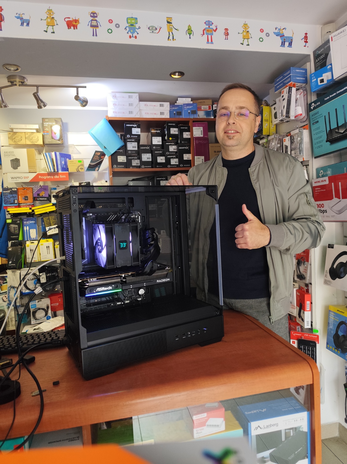 Proces składania komputera, rozpoczynam od zebrania informacji, do jakich zastosowań komputer będzie używany, jaki przedział cenowy i jakie opcje wizualne są preferowane. Następnie klient otrzymuje oferty z kilkoma konfiguracjami. Po wybraniu określonej opcji i wpłaceniu zaliczki następuję praca przy montażu, która zajmuje do 3 dni roboczych.